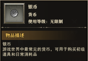 游戏世界中最常见的货币,可用于购买初级道具和日常消耗品;